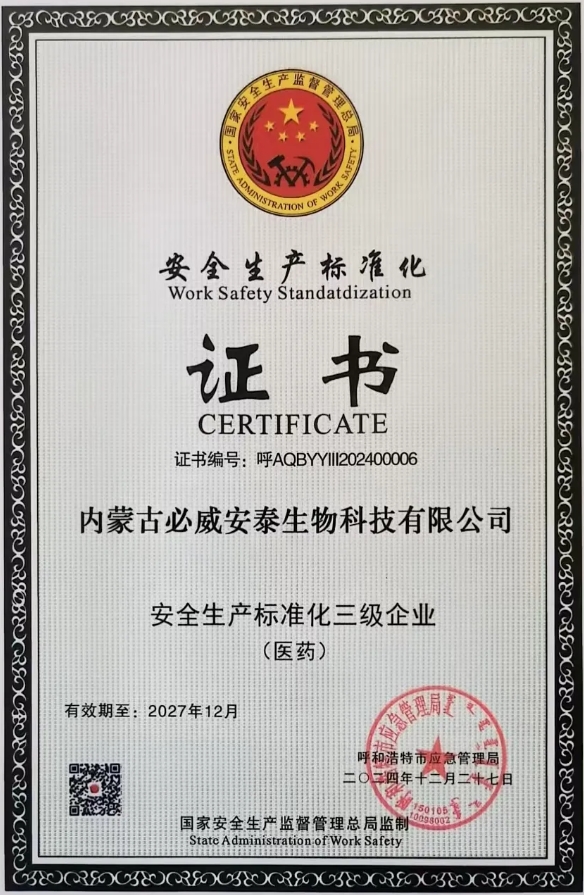 內(nèi)蒙古必威安泰生物科技有限公司成立于2008年6月,位于呼和浩特市和林格爾乳業(yè)開發(fā)區(qū),占地123畝,注冊資本1.25億元。公司專注于生物疫苗研發(fā)生產(chǎn),是原農(nóng)業(yè)部批準(zhǔn)的首家采用細(xì)胞懸浮培養(yǎng)技術(shù)生產(chǎn)口蹄疫疫苗的企業(yè),擁有兩條7550升德國進(jìn)口懸浮培養(yǎng)生產(chǎn)線,年產(chǎn)能20億毫升,覆蓋多種動物疫苗。公司被認(rèn)定為自治區(qū)“企業(yè)研發(fā)中心"“重點(diǎn)龍頭企業(yè)單位”“企業(yè)技術(shù)中心"和國家"高新技術(shù)企業(yè)”,“口蹄疫基因標(biāo)記疫苗”獲全國商業(yè)科技進(jìn)步一等獎。2024年,瑞普生物控股后,公司構(gòu)建全生命周期質(zhì)量管控體系,獲多項(xiàng)國際權(quán)威認(rèn)證,包括ISO9001、ISO14001、ISO45001、ISO5001及獸藥GMP、CNAS、GCP、GSP等。